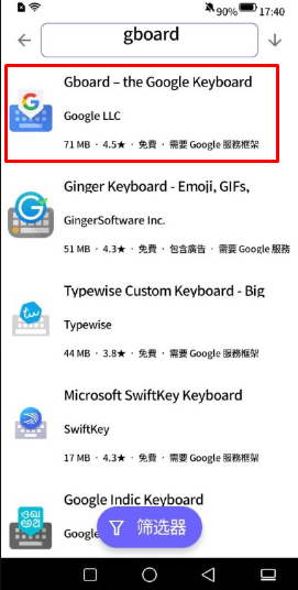 除此之外也可以在Aurora下載Gboard,就可以用注音鍵盤了! (內建的只有簡體字拼音鍵盤)